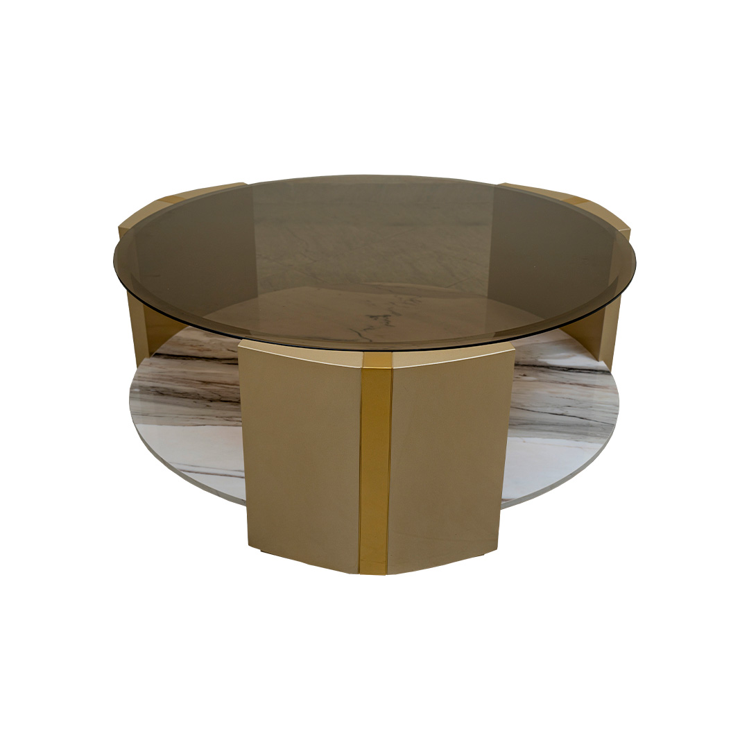 Mesa de centro con vidrio en tono bronce